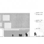 L’extension de l’école est un volume compact s’implantant entre le volume de la salle de sport existante et les 4 classes construites en 1989 créant ainsi des liaisons entre les bâtiments. Les trois bâtiments deviennent une école. Cette implantation permet également de dégager un maximum de préau et surfaces extérieures. Deux préaux et deux accès sont ainsi nouvellement créés, l’accès principal côté préau au sud-est et l’accès secondaire côté ouest. Les accès indépendants pour la salle de sport, locaux des sociétés communales, dépôts communaux se font tous depuis la route de la Repentance. De par son implantation, le nouveau programme n’entrave pas les circulations entre les différents espaces extérieurs. Les salles de classes s’implantent en périphérie d’un hall central favorisant ainsi la lumière naturelle dans les salles de classes et une rationalité du projet. La salle d’arts visuels et la salle de jeux, bénéficient en plus des ouvertures de façade, d’un éclairage naturel depuis le hall grâce à la verrière en toiture. Un noyau de services accessible depuis le hall prend place côté mur mitoyen avec la salle de sport. Des liaisons sont faites entre l’école de 1989 et la salle de sport. Les salles de cours occupent les deux niveaux sur rez-de-chaussée. Le rez est dédié aux locaux publics, administration, salles de sociétés locales, salle de soutien. Les locaux des sociétés locales peuvent être utilisés à la fois de manière indépendante avec accès depuis la route de la Repentance ou communiquer avec le bâtiment de l’école.